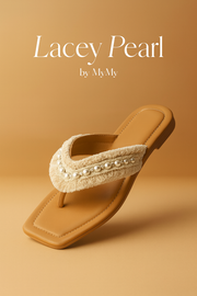 Description : Introducing "Lacey Pearl" by MyMy - featuring beige lacey straps adorned with exquisite pearl embellishments. Designed for both style and comfort, these flip flops add a touch of luxury to your casual footwear collection. Whether you're lounging by the pool or out for a leisurely stroll, "Lacey Pearl" ensures you step out in sophisticated style. Embrace timeless elegance and elevate your summer look with "Lacey Pearl" by MyMy!