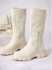 Description : These fashion-forward thigh-high boots with a Knit upper and sole design are the perfect companion to add some fun to your dreary fall or winter wardrobe and will highlight your chilly weather outfits. The stretchy knitted upper on these thigh-high boots for women allows for easy on and off while providing a snug fit that keeps your legs cozy and warm during the cold months. Wear these women’s boots to complete your high-street look with edgy shorts, mini skirts, or cool coats. Boost your confidence, whether you're strolling down the street, attending a party, or going on a date