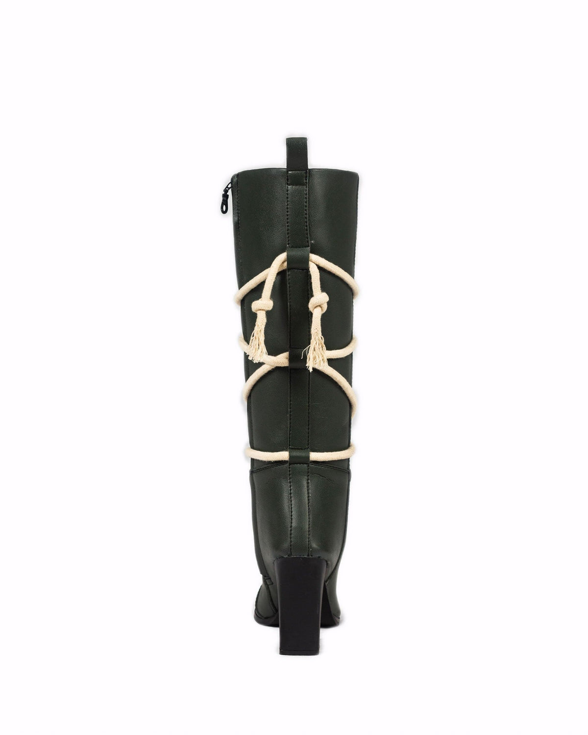 Description : Step into a world of style with our Calf-High Boots featuring intricate rope detailing. These boots are a fusion of rugged charm and elegant design, making them a unique addition to your wardrobe. The distinctive rope accents gracefully wrap around the calf-high shaft, creating an eye-catching and sophisticated look. Crafted for both comfort and durability, these boots are your go-to choice for any adventure. Elevate your footwear collection with these boots that effortlessly combine practicality and distinctive style.